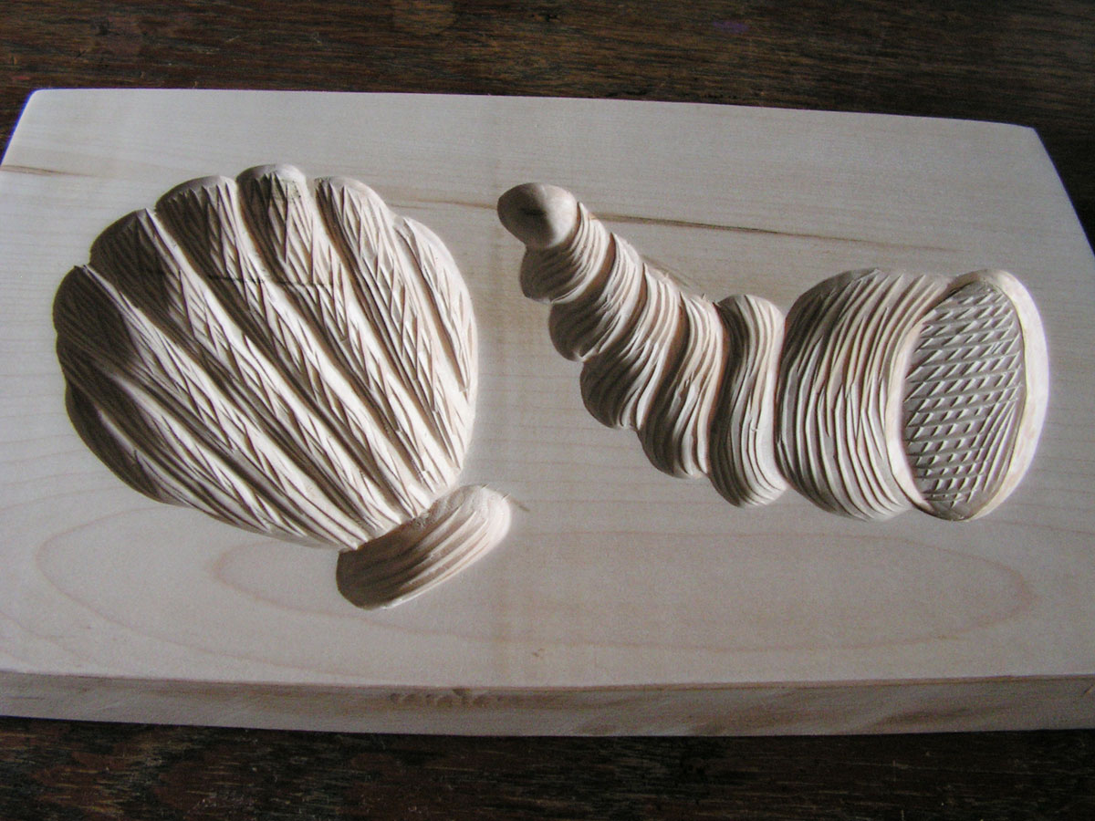 Formy jsou vyráběny výhradně ručně historickými postupy z tvrdých dřev ovocných stromů a javoru, olše, břízy. Na přední straně jsou naše formy značené monogramem (viz. foto) a po stranách signaturou viz foto.